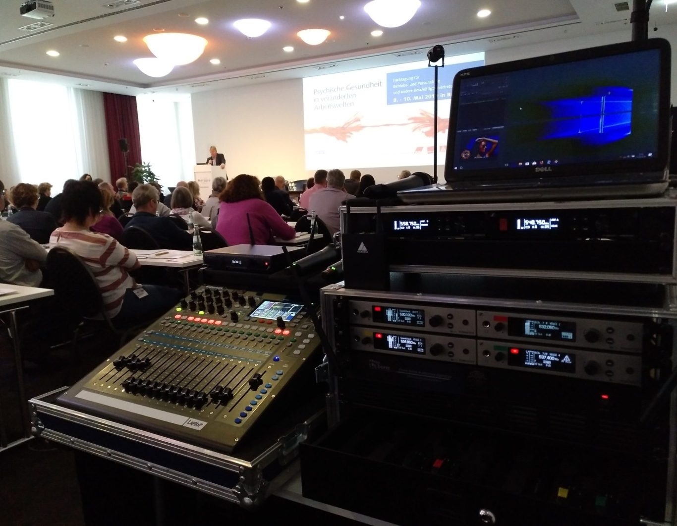 Selbstverständlich erledigen wir von unserem Mischpultplatz (FoH) analog zum Veranstaltungsgeschehen auch das Einspielen von Musik, Intro's und Jingles individuell nach Regieplan.